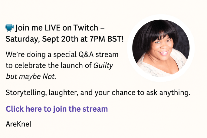 I host casual streams where I knit, chat, and occasionally dive into the world of Guilty but maybe Not.